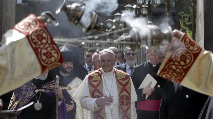 Karekin II, the patriarch of the Armenian Apostolic Church, told the pope on Friday that people remembered, թ§Չ-ժwith gratitude,թ§Չ-Թ Francisթ§Չ-Չ§ թ§Չ-ժhistoric sermon condemning the genocideթ§Չ-Թ at St. Peterթ§Չ-Չ§s Basilica last year. And Aram Hamparian, executive director of the Armenian National Committee of America, issued a statement saying թ§Չ-ժthe pope is both strengthening Christian solidarity with Armenia and taking a courageous stand for truth and justice.թ§Չ-Թ