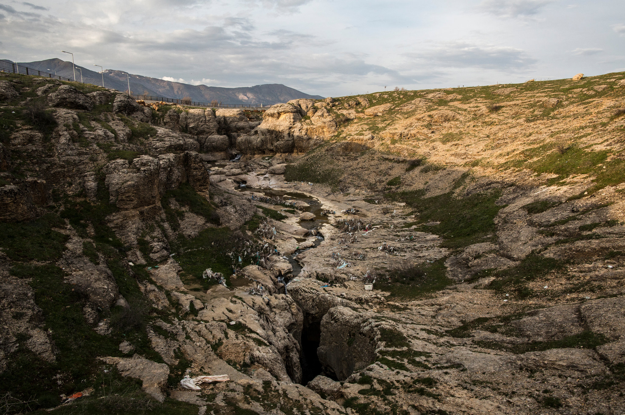 A small stream flowing into the Dudan cave in Turkey. It was here that the Armenian residents of a local village are said to have been thrown, after being led there by Ottoman gendarmes and local Kurdish paramilitary personnel. Credit Bryan Denton for The New York Times