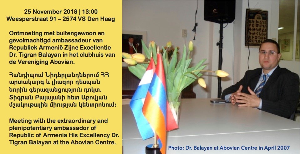 Meeting with the Extraordinary and Plenipotentiary Ambassador of the Republic of Armenia to the Kingdom of Netherlands His Excellency Dr. Tigran Balayan at Abovian Centre.